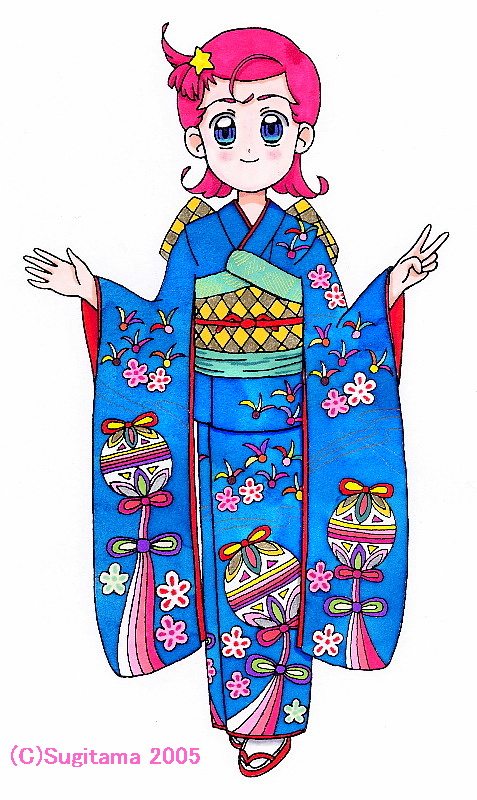 コメットさん☆の和服姿。少し緊張した面もちで…。