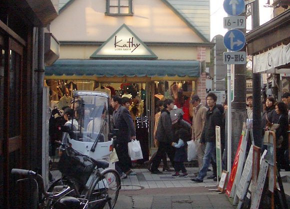 この場所は、東洋精肉店というお店の脇のやや広めの路地から、小町通りを見たところになります。このカットは、ラバボー視点なのかどうかはっきりしない部分もありますが、もしラバボー視点だとすれば、ラバボーのいる場所も特定できることになります。ちなみに場所としては、第1話で、コメットさん☆が、星力でメロンパンを出したところが、この右後ろになります。作品中では、もう少し左右の道幅が狭く描かれ、正面のお店の右隣の店も、連続して描かれるなど、多少のデフォルメが入っています。またこの地点は、小町通りのだいぶ起点より(鎌倉駅より)になりますので、コメットさん☆は、かなり後戻りしていることになります(笑)。2004年11月21日撮影。