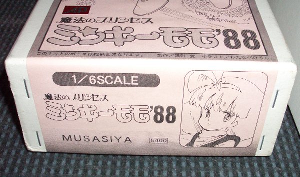 左が初期版、右が再販版である。このように一見同じに見えるのだが…。とりあえず「AP」シールの色が異なる。かかっているピンク色の紙の右側に、グレーの枠がない。なお、中身のキットを完成させると、「地面に座り足を投げ出すモモ」が出来上がり、箱のイラストとは異なるポーズとなる。