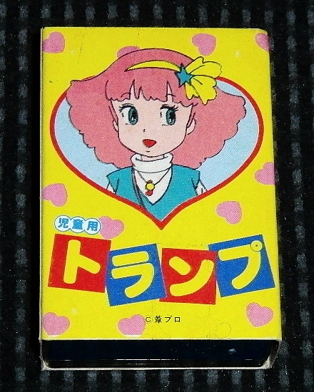 これが3種目のトランプ。一般的なイラストをそのままトランプにしたもので、逆版なのはA、Bと同じである。モチャの口の中が塗られていないとか、モモの目の部分に緑色が入れられていないなど、多少減色印刷気味になっている。