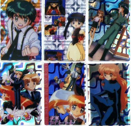 香港で売られていた非正式品カード。全てがいわゆる「プリズムカード」という、恐るべきもの。そのプリズムのパターンも独特である。何種類あるかすら不明な代物で、カードの印刷面を見る限り、ムック本の絵を適当にトリミングしてコピーし、印刷したもののようである。同一カードが2枚あるように見えるが、裏の画像を参照。