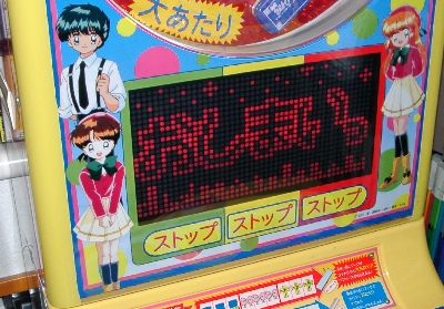 新宿の「タカシマヤ・タイムズスクウェア」内にあるゲームセンターに設置されていて(ここは入場料がかかるという、一大アミューズメントパークであったが…)、必死になってカンペンをそろえるべく、何度も挑戦したのが思い出されますなぁ。それがまさか自分の部屋に、機械ごとやってくるとは…。ちなみにこの私有機は、「当たり」の確率を最高に設定してあるので(後ろ側の基板のディップスイッチで設定)、100円で2回当たるときもある。