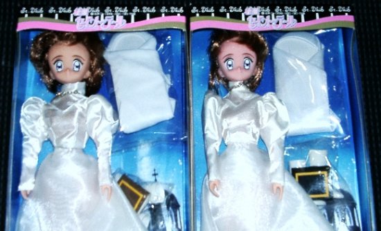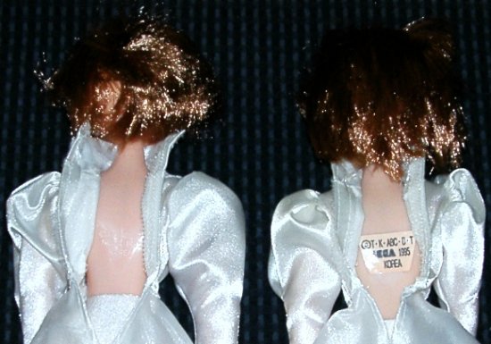聖書の色の違いはこの程度である。なおこの画像では、右の人形が背中にシールを貼って著作権表示をしているタイプ(レイアースからのボディ流用)、左は新規の本来のセイントテール・聖良用として作られた、背中に浮き出しで著作権表示があるタイプである。わずかに顔部分の色味が異なり、セイントテール同様シールを貼って著作権表示のタイプのほうが、濃い色なのがわかる。