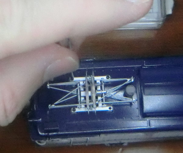 パンタをたたんだところ。この時の姿も大事ですよね。さすがに傾きなどはありません。多少上げにくいので、下げた時にひっかかるカギをわずかに曲げて、上げ下げがしやすいようにしておきました。