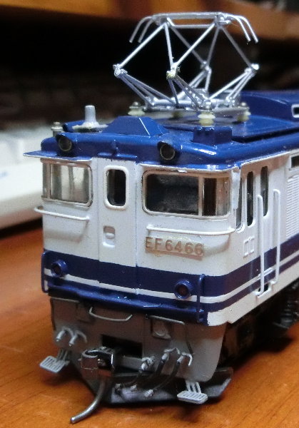 交換後の前頭部。よりすっきりした感じは、さすがフクシマというところですが…。EF64は、一応寒地使用を考慮していましたが、そうするとパンタのバネにカバーは?とか、多少の疑問もあります。まあしかし、PS16よりはずっといいのではないかということで。