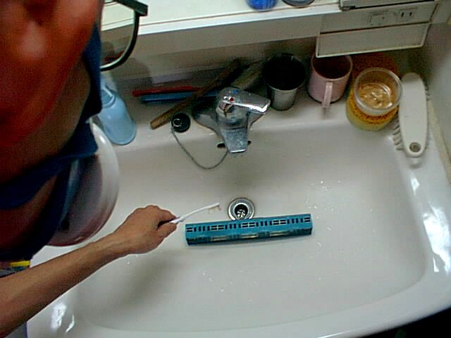このように金属ブラシでこそげ落とす。はがれた塗膜は排水口を詰まらせがち。