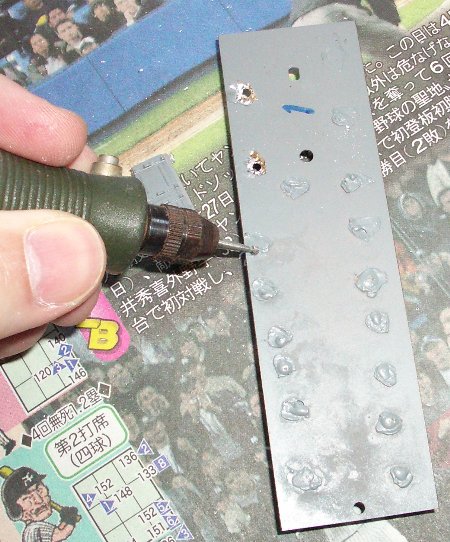 10.元の床下機器を取り外しているところです。基本的に元のものを移植する方法によりました。低温ハンダで止められているので、ハンダ部分を削り、取り外します。電動工具の真下に見えるのが、既に取り外した制御器です。