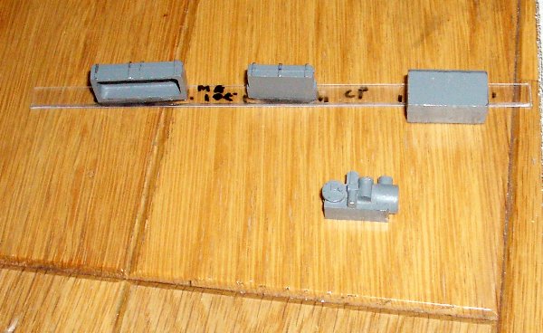 12.厚みを薄くしたり、取り付け部分を多少加工したりした床下機器を、所定の場所に並べて接着していきます。接着には、エポキシ樹脂系接着剤を使いました。