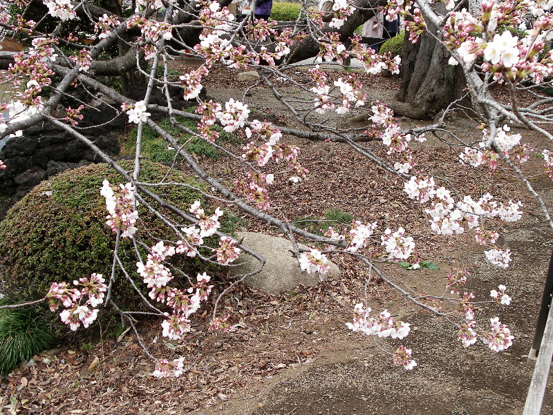 地面近くに咲くソメイヨシノ。この木は花がやや粗です。