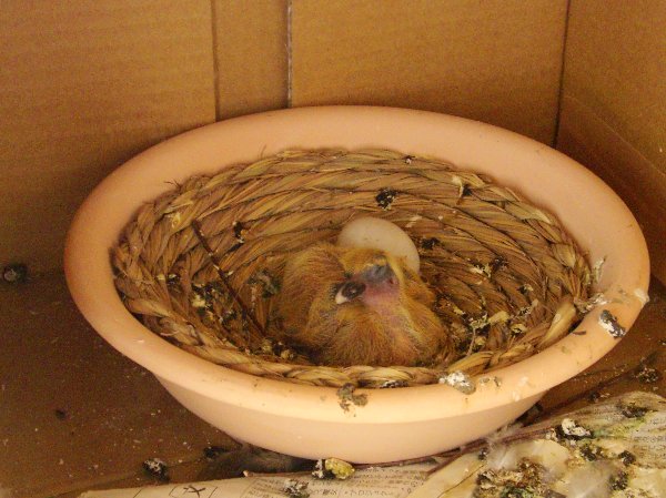 23日目になってもかえらない卵(手前)。これはもうかえらずに終わりました。このように孵化しない卵というのが、案外多いです。そうやって個体調整が行われているのかもしれませんし、またこのような人工的な巣材が、あまり良くないのかもしれません。9月12日。