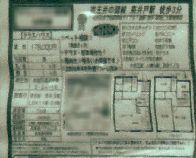とはいえ、まだこの段階では、あまり絞り切れてないのも事実ですので、浜田山駅近くで営業活動をしていた不動産屋さんに、神田川近くの低層マンション物件に「売りに出ているものは無いか」訪ねたり、その不動産屋さんが売っている物件のパンフレットをもらったり、近くのマンションを見に行ったり、オープンハウス(日にちを決めて、空き家の物件を内覧させる営業方法)になっているところを見たり、不動産屋さんの案内で、三鷹市牟礼の物件を見に行ったりということは、積極的にしていました。何しろ、御用弁護士が設定した期限は、6月末なので、あまり時間をかけてもいられません。中には神田川近くの物件を照会したところ、「建築基準法違反物件」なのでと、案内を断られたりする一幕もありました。