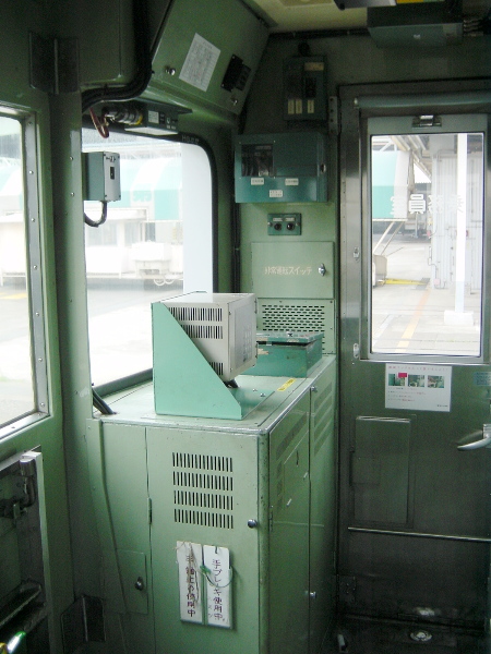 運転台。103系の非ATC車に似ていますが、ユニット式運転台なのは、103系と同様です。マスコン左上に、切り替えスイッチがあり、「営団」、「JR」と、スイッチが切り換えられるようになっています。