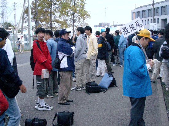 開場前に行列を作る人々。7時頃です。限定カードや、電車の部品を目当てにする人々は、このように徹夜で並びます。私は初電で行きましたが(笑)。