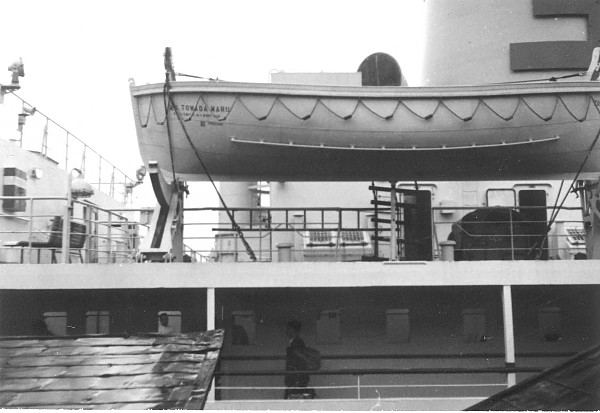 十和田丸の救命ボートと、連絡船の煙突に描かれた、大きな「エ」の字マーク(右上)。見た目としては、まあ一応普通の客船ですね。