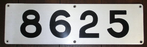 東急8000系の車体番号板です。デハ8210号のもの。廃車に伴い発生した物です。文字はステンレス板にエッチングでへこませ、そこに紺色の塗料を差してありますが、重ね塗りがあるようで、2の部分などはみ出しが少しあります。